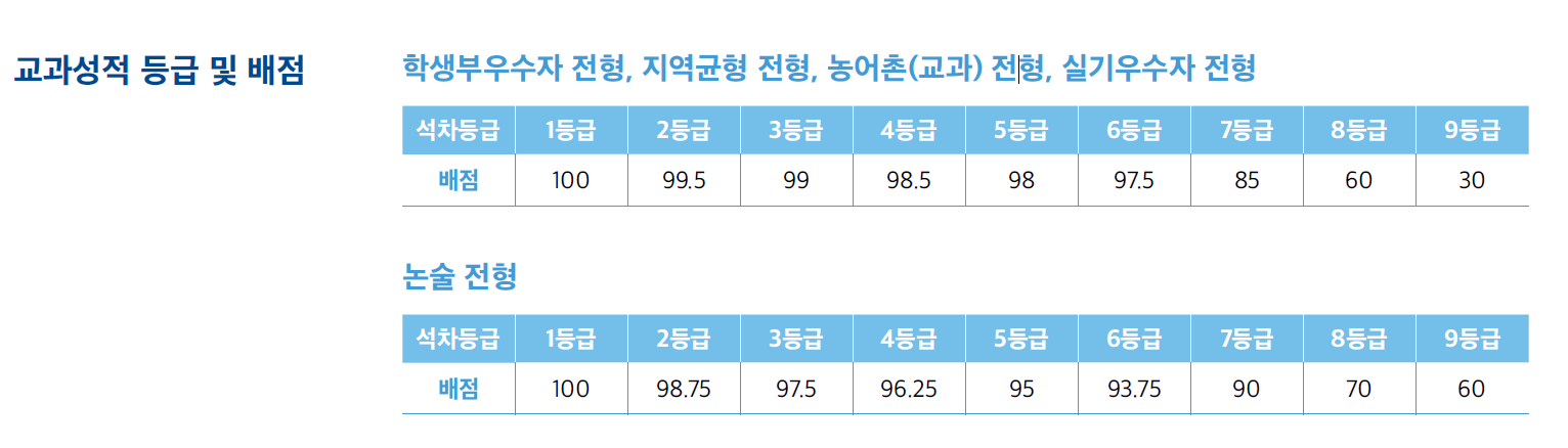 가천대 논술의 경우 커트라인이 3등급~5등급 사이에 많이 분포하고 있습니다. 7등급부터는 학생부 내신 감점이 굉장히 큰 폭으로 이루어지기 때문에 사실상 가천대에서