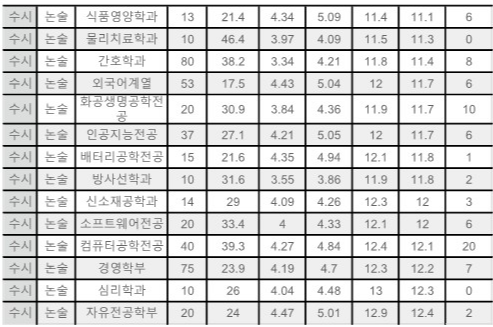 다만 매년 어느 학과가 가장 낮을지는 예측할 수 없으니 가장 낮은 커트인 8개만 맞으면 된다고 생각하지 마시고 대략 10~11개 정도는 맞아야 하는구나라고 생각하시면 됩니다.