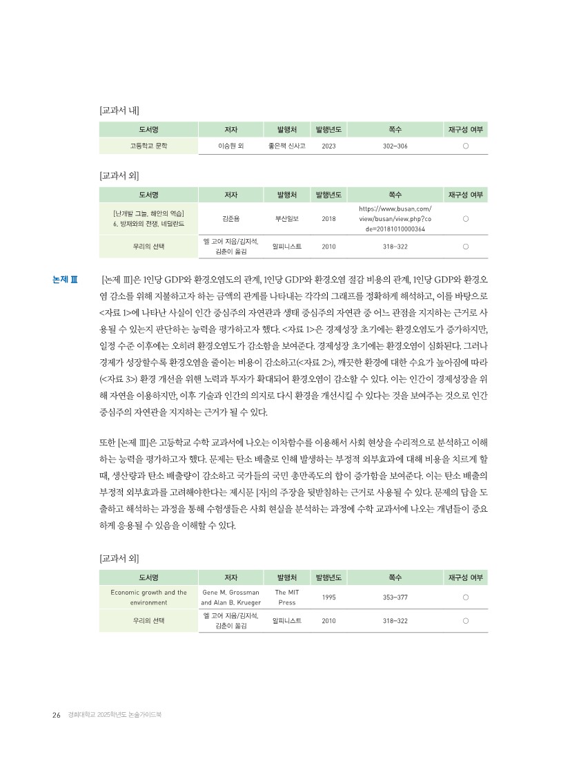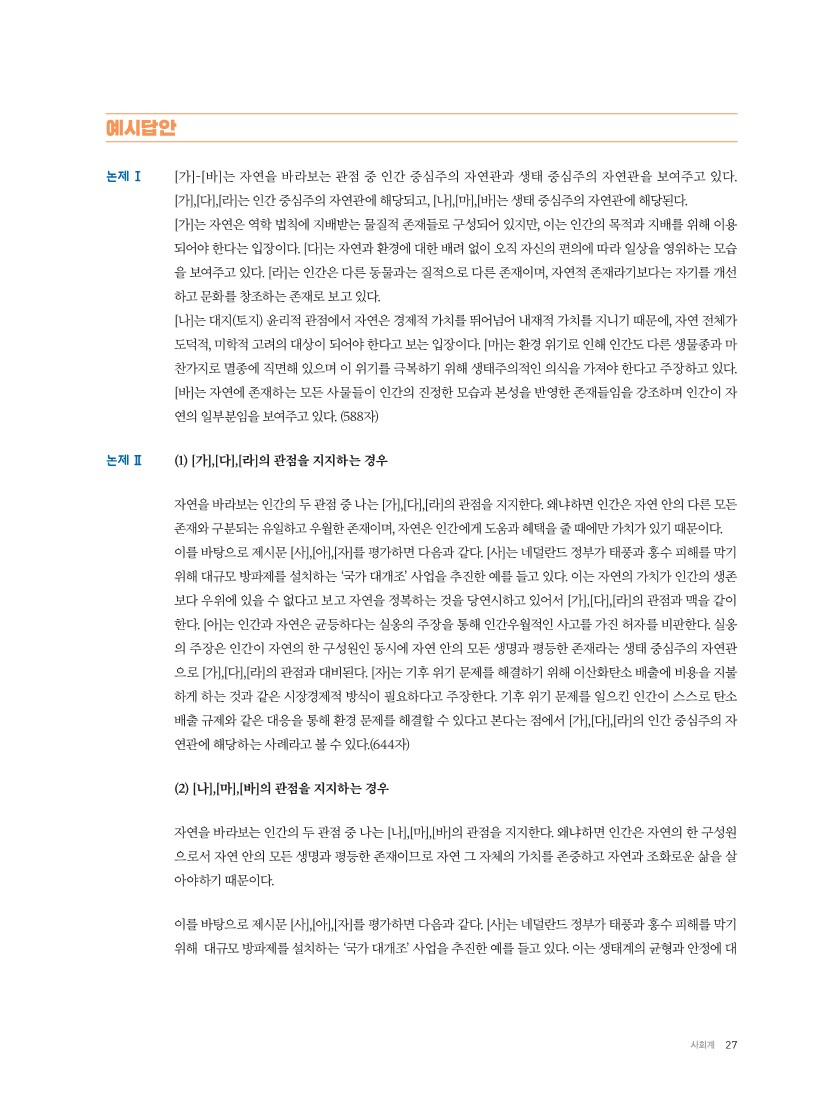특정 쟁점에 대해 찬반을 논하기보다, 해당 쟁점의 본질적 문제에 대한 성찰적 접근을 필요로 합니다. 따라서 교과서와 관련 문헌, 시사 자료 등을 폭넓게 읽으며 사고력을 확장하는 것이 유리합니다. 다독과 글쓰기, 토론 등을 통해 통합적 사고력과 논리력을 기르며 준비하는 것이 좋습니다.