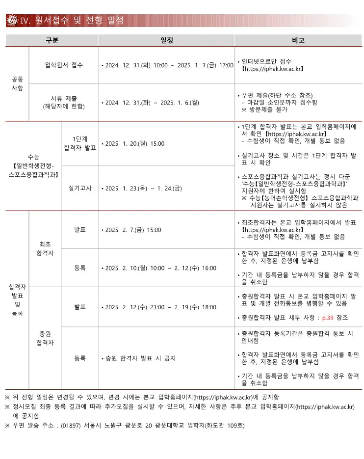 광운대 정시 전형일정 2025