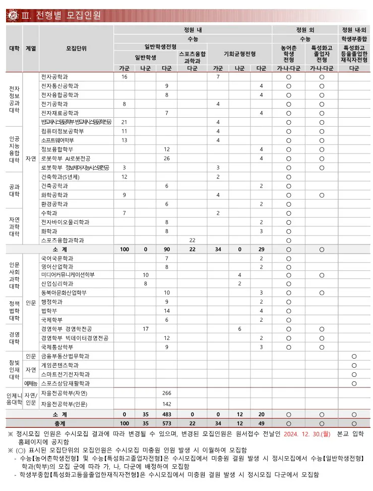 2025학년도 광운대에 신입생이 될 학생들을 기준으로 한 광운대의 정시 전형에 대한 내용은 아래 사진을 통해 한눈에 확인하실 수 있으니 정시 지원에 도움이 되시길 바랍니다.