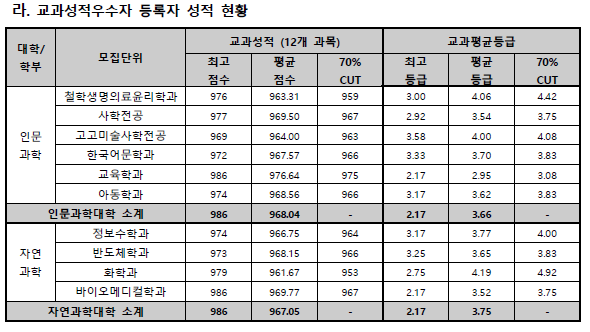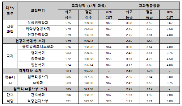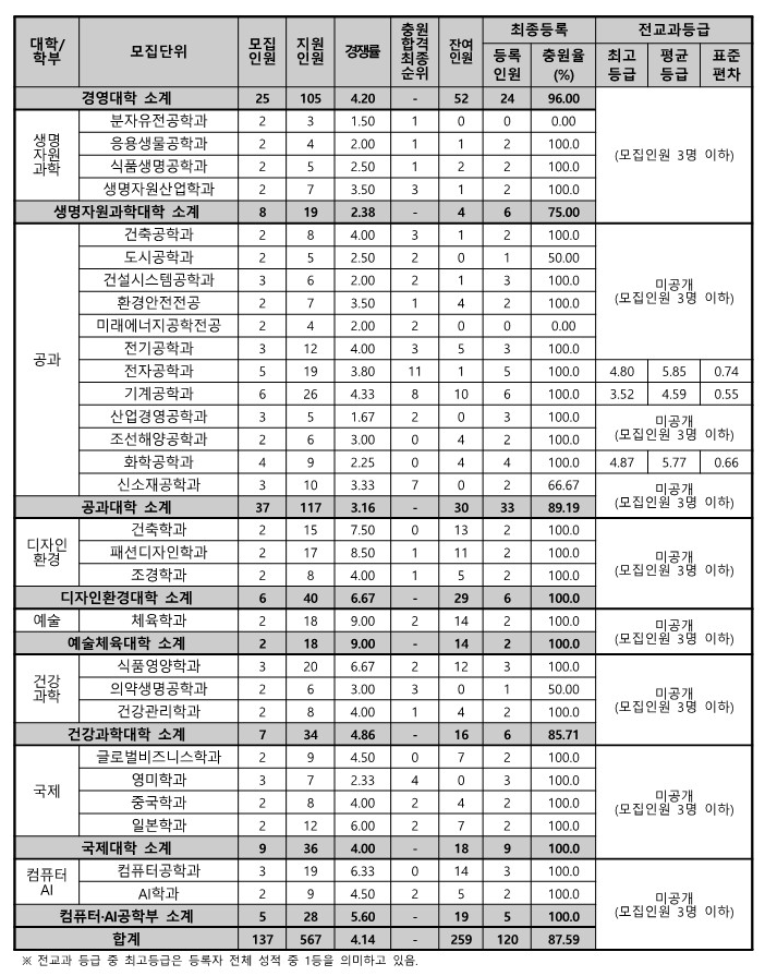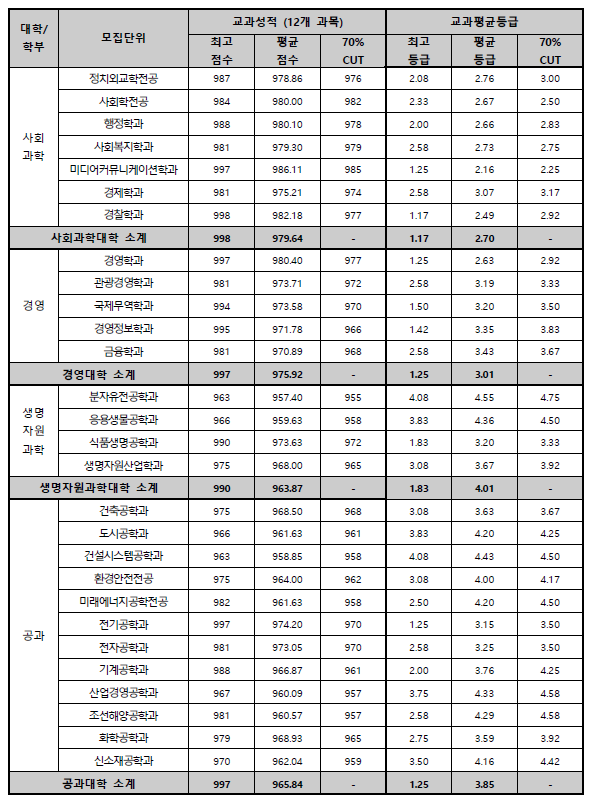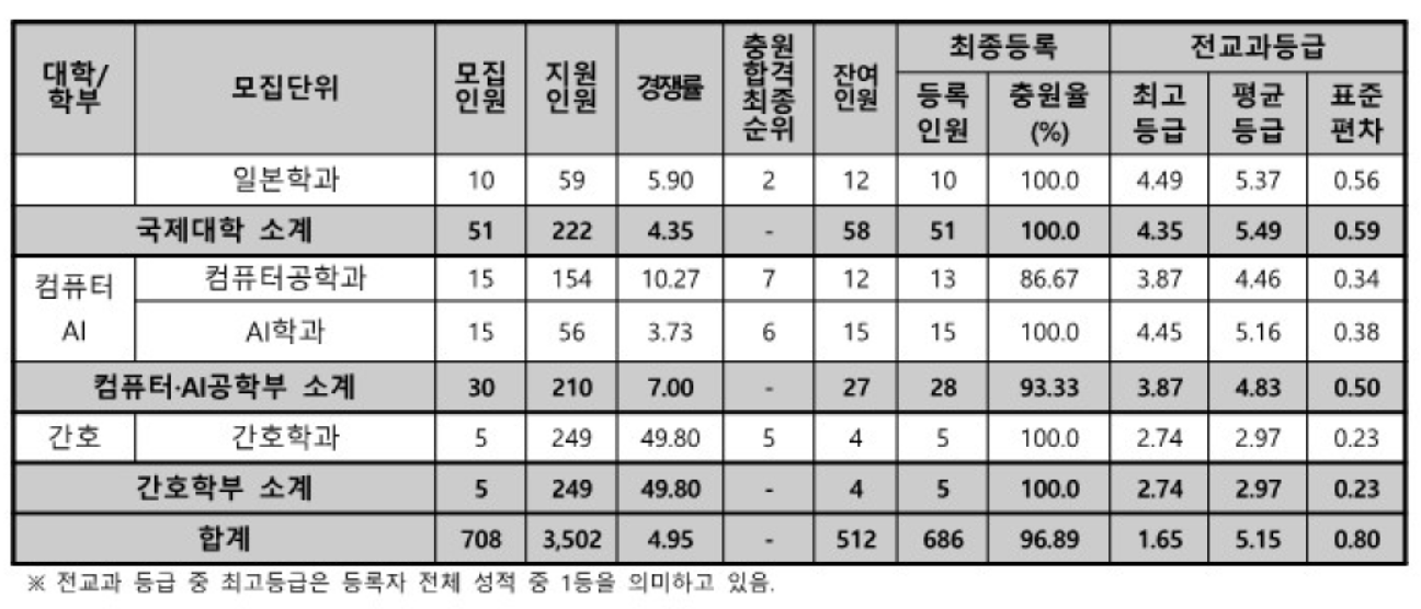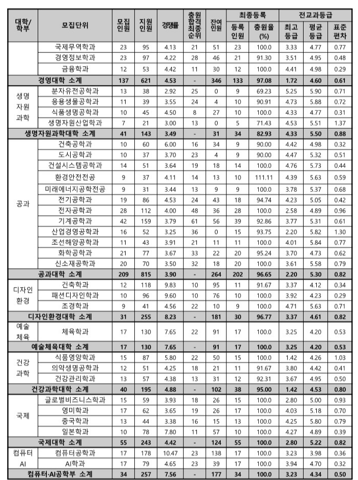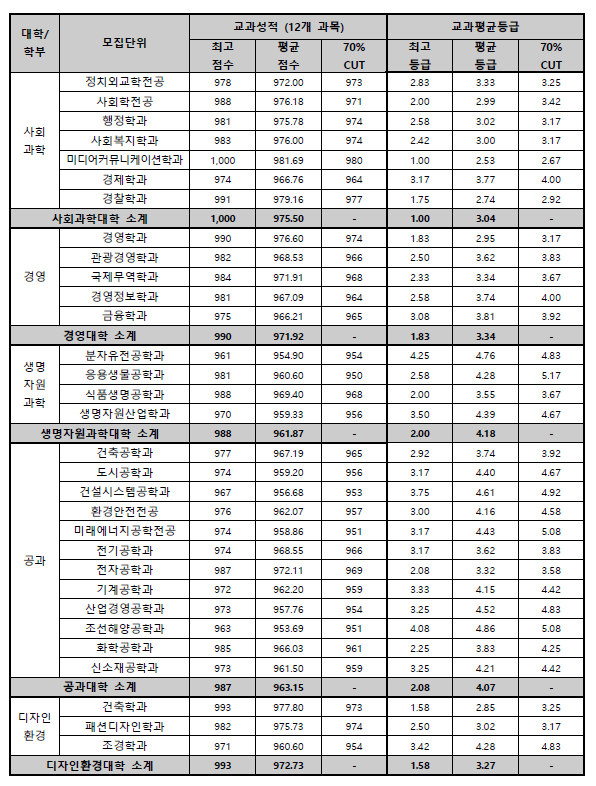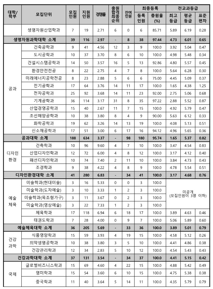 수시등급이 공개된 몇몇 학과들을 보면 평균등급이 2점대 초중반을 형성하고 있으니 지원 시 참고하시기 바랍니다.