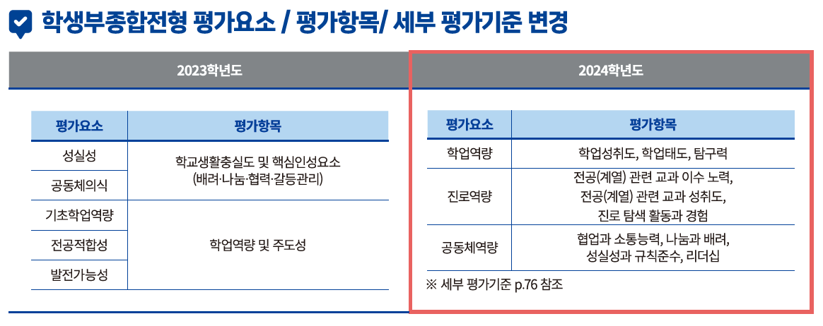 동아대의 학종 평가시 평가항목이 일부 수정되었습니다.