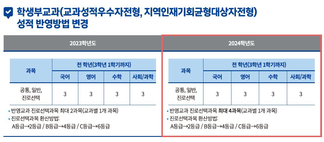 2024학년도 수시모집 동아대학교 학생부 성적산출