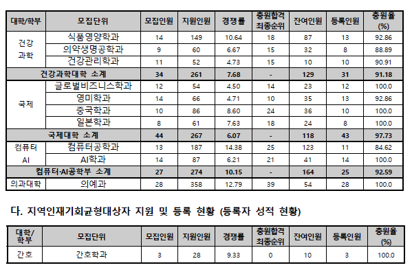 4. 동아대 충원합격 최종순위 및 경쟁률, 지역인재교과전형 2023