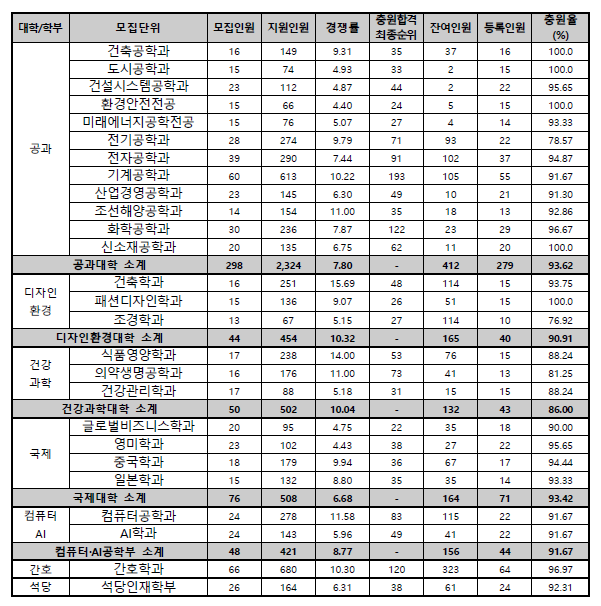 - 2023 동아대 지역인재교과전형 충원합격 최종순위 및 경쟁률