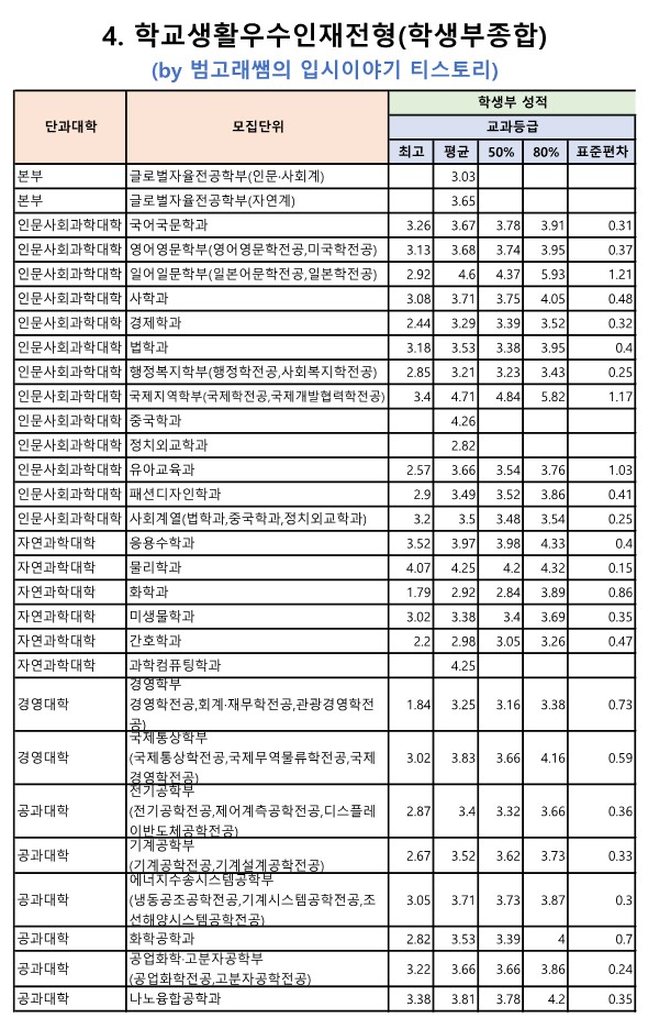 교과성적우수인재젼형의 최종 합격자 평균 등급은 2점대 중반~3점대 중반 정도에 형성되어 있습니다.