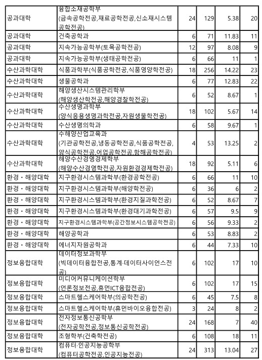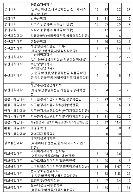 - 6. 부경대 경쟁률, 모집인원, 최종후보순위 (학생부 교과전형, 2023학년도 입학생 기준)