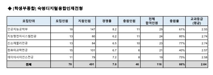 숙명여대 수시등급 2024 숙명디지털융합인재전형
