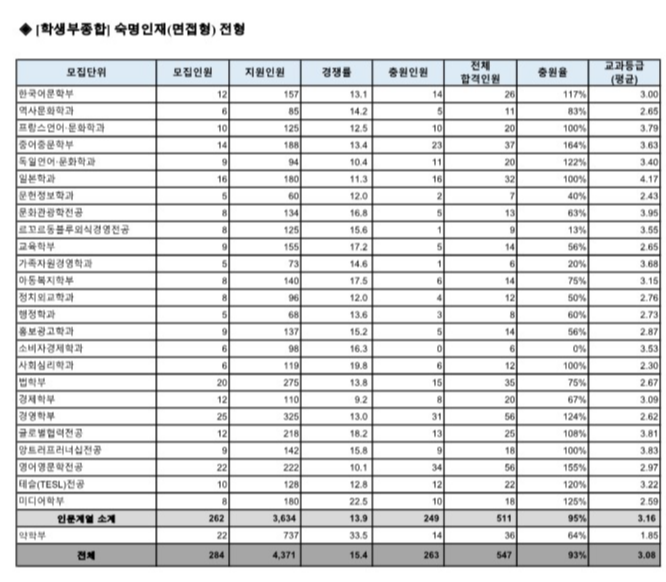숙명여대 수시등급 2024 숙명인재(면접형) 전형