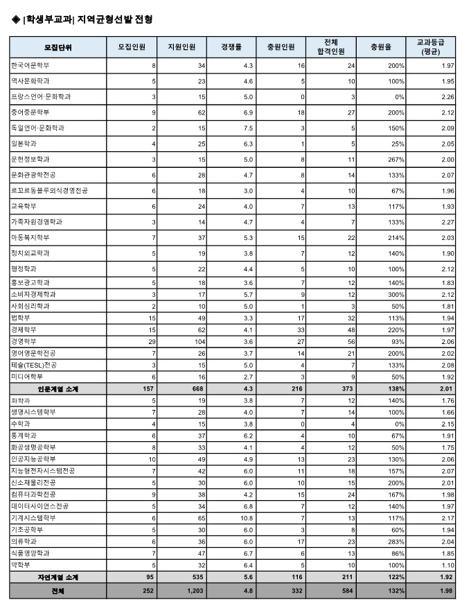 숙명여대 수시등급 2024 교과 지역균형선발 전형