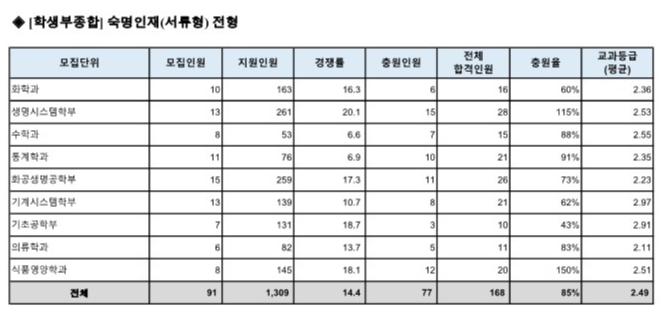 숙명여대 수시등급 2024 숙명인재 서류전형