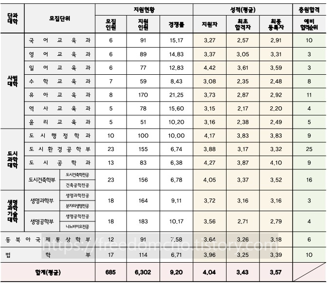 사범대의 경우 희망학생들이 많아 커트라인이 보통 높은 편이며