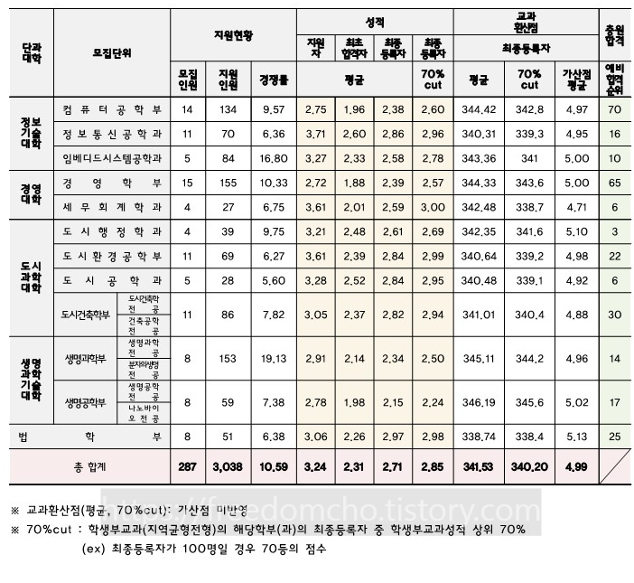 다만 학교별, 학과별로 자세한 내용은 전문가와 상담 후 결정하시기 바랍니다.