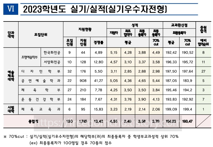 즉 실기전형의 경우는 공연예술학과와 조형예술학부를 제외한 모든 예체능학과들이