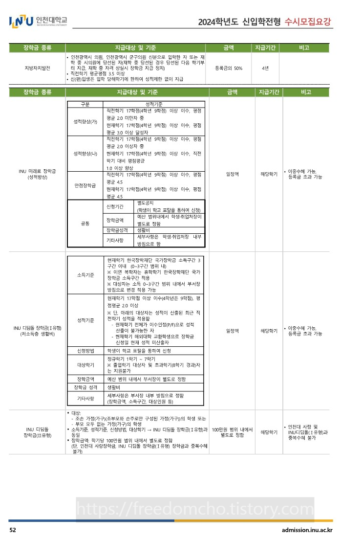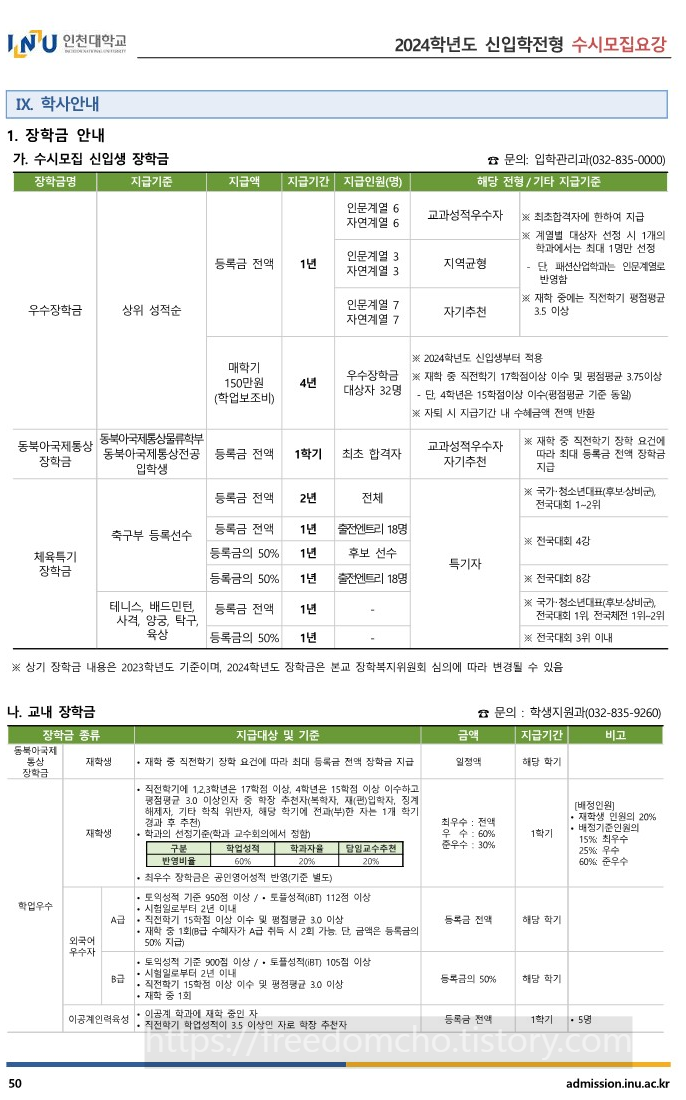 14. 2024 인천대 장학금 (신입생 및 재학생) 안내