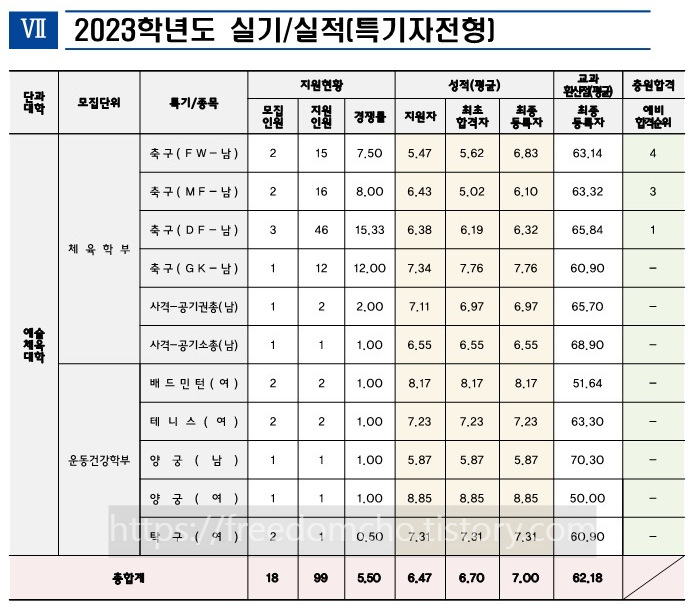 11. 인천대 수시등급 및 실기점수 2024 (실기우수자전형) (2023학년도 입학생 기준)