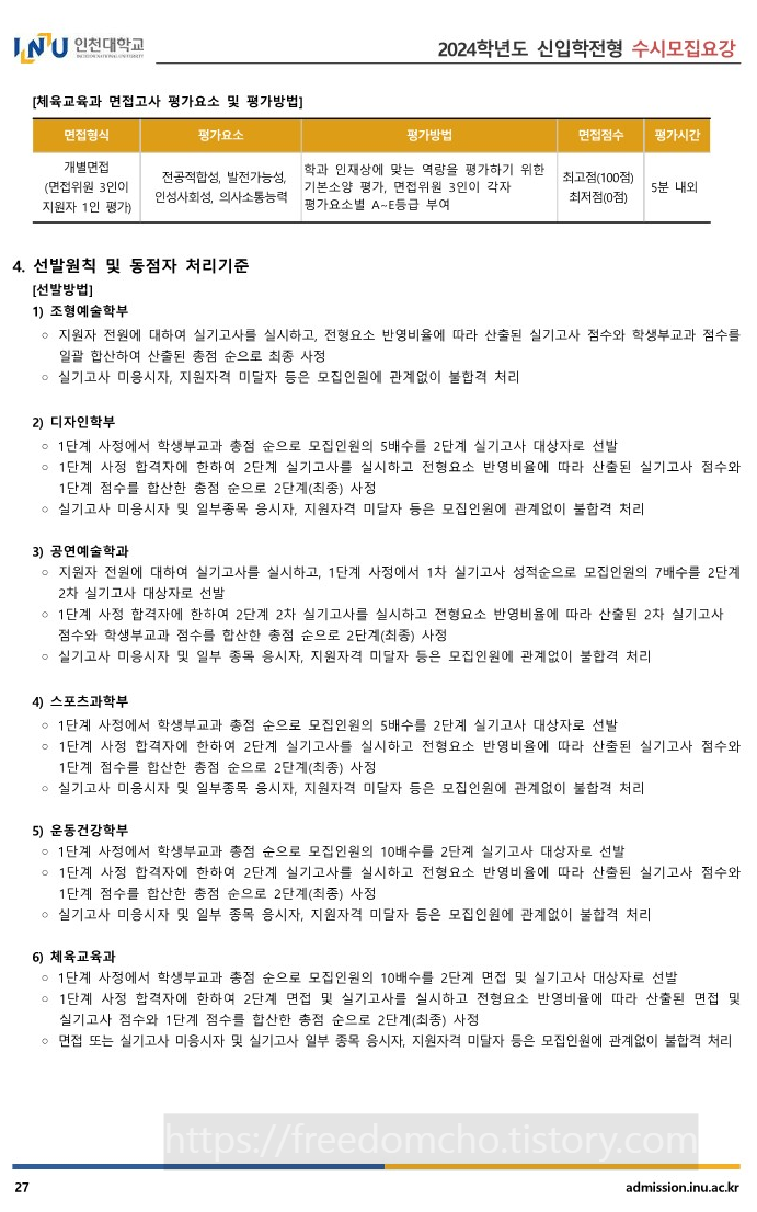 7. 2024 인천대 전형일정, 합격자 발표일, 실기 면접고사일