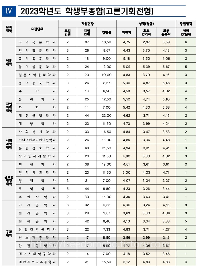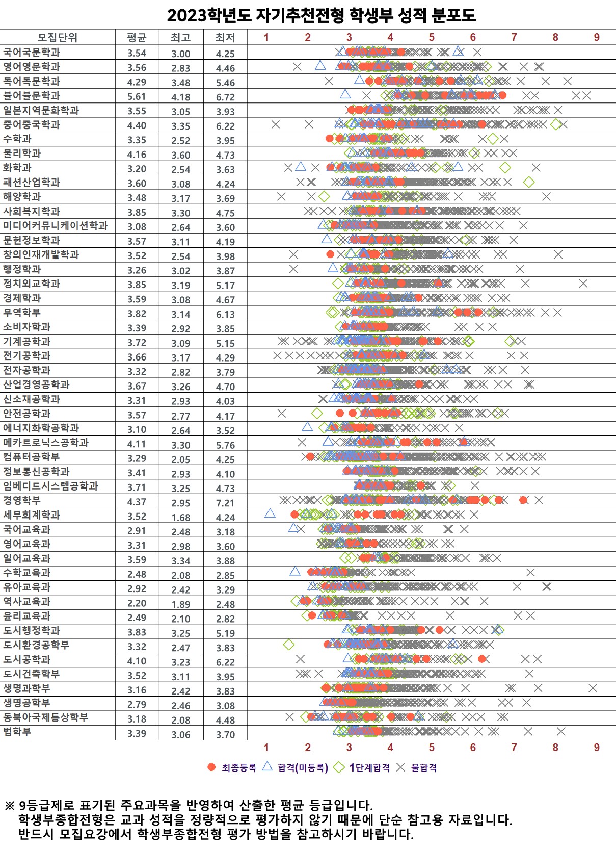 종합 합격자의 경우에 이러한 학과들은 특목/자사고 합격자로 인해 평균등급이 낮아질 수 있습니다.