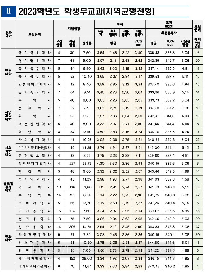 1. 인천대 수시등급 2023 (교과성적우수자전형, 2023학년도 입학생 기준)