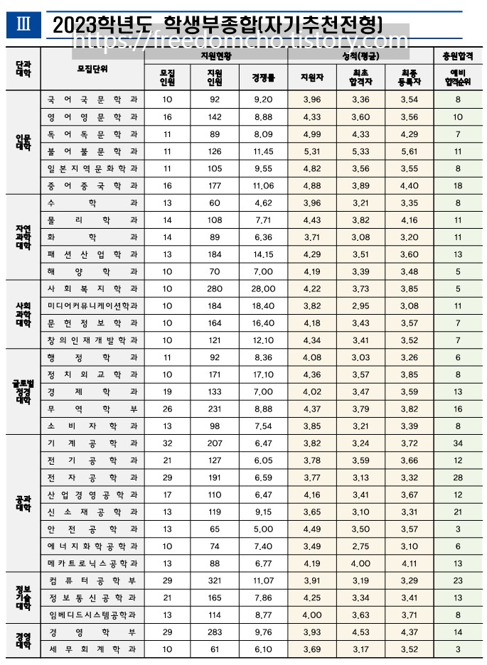 4. 인천대 수시등급 2023 (학생부종합 자기추천전형, 2023학년도 입학생 기준)