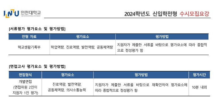 10. 2024 인천대 제출서류 및 전형방법 요약