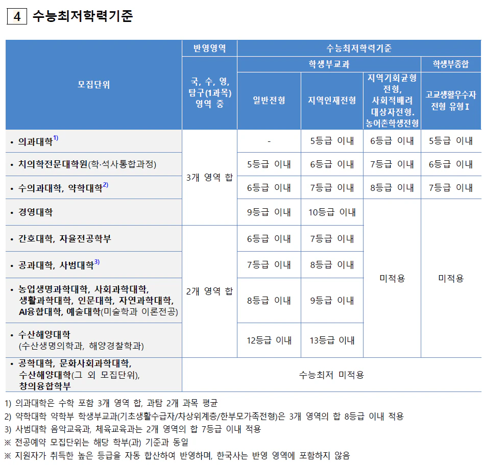 전남대 교과 지역인재전형 수시등급 2023 4