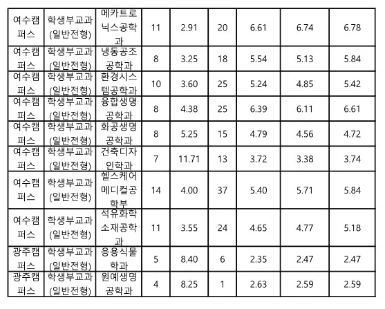 전남대 교과 일반전형 수시등급 2023 5