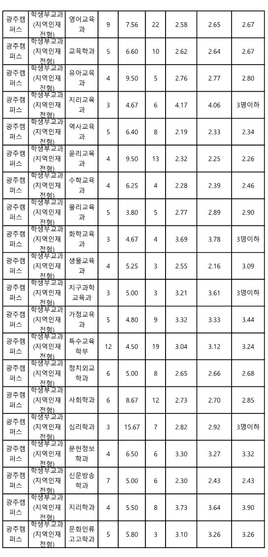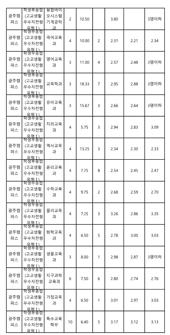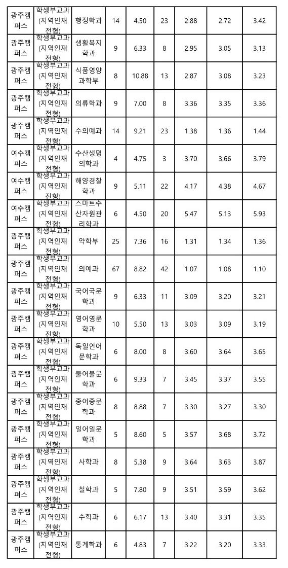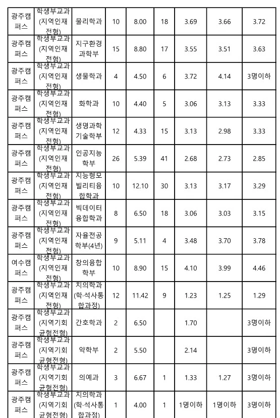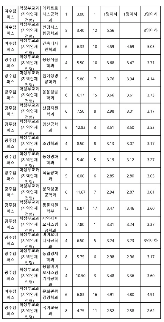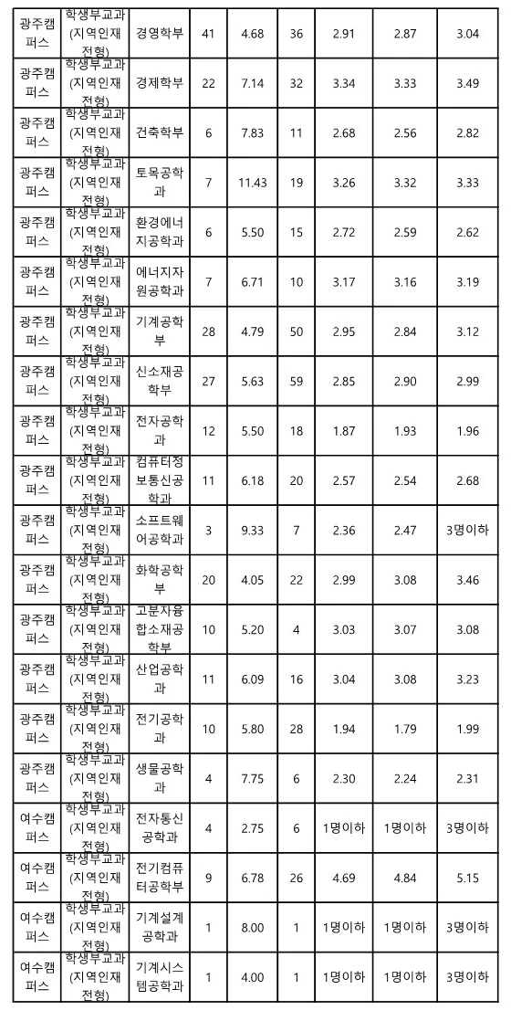 전남대 교과 지역인재전형 수시등급 2023 3