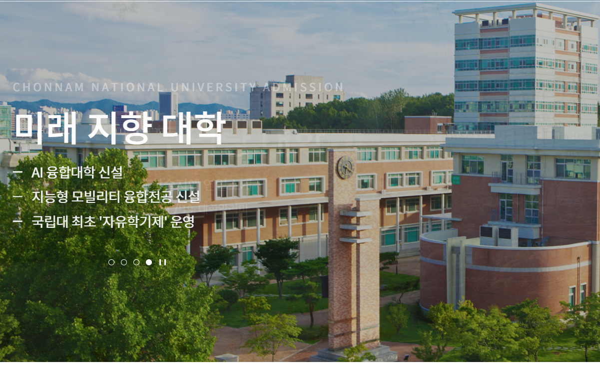 Chonnam National University Admission 미래 지향 대학 AI 융합대학 신설 지능형 모빌리티 융합전공 신설 국립대 최초 '자유학기제' 운영