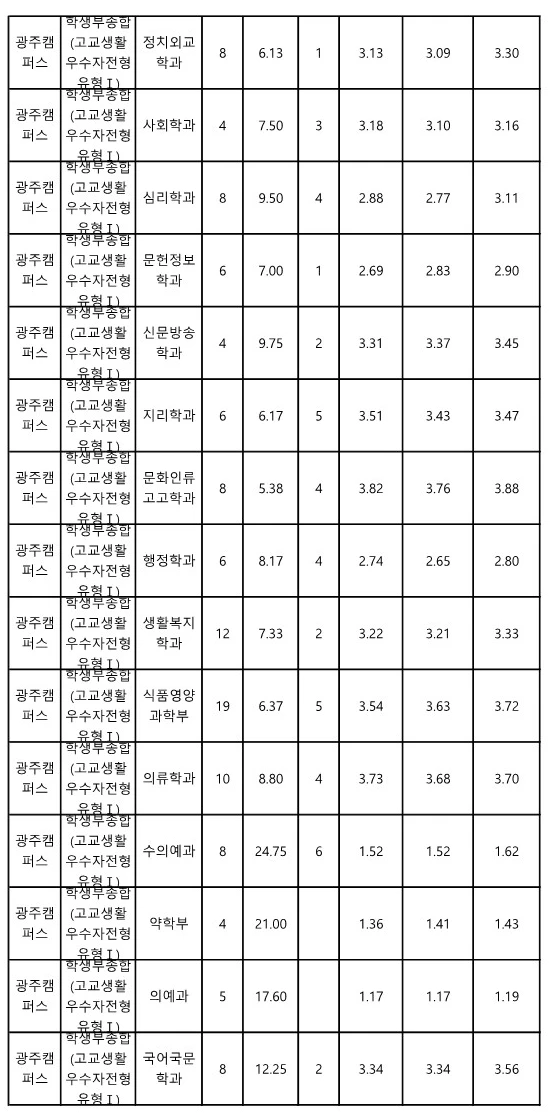 전남대 수시등급 종합전형 2023 8