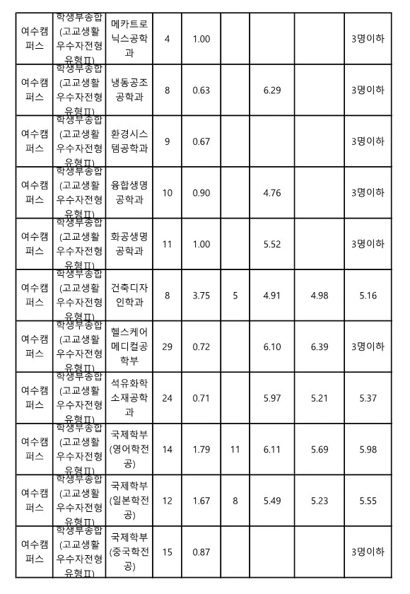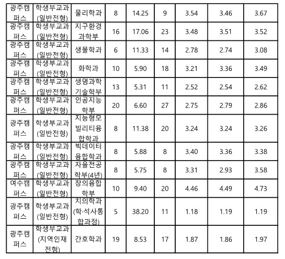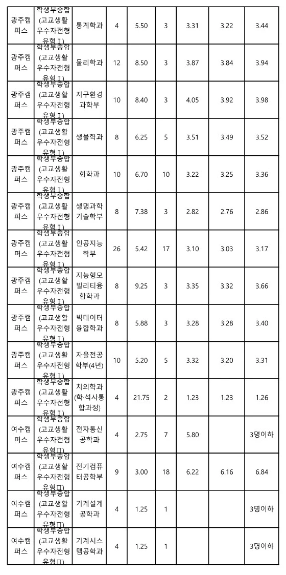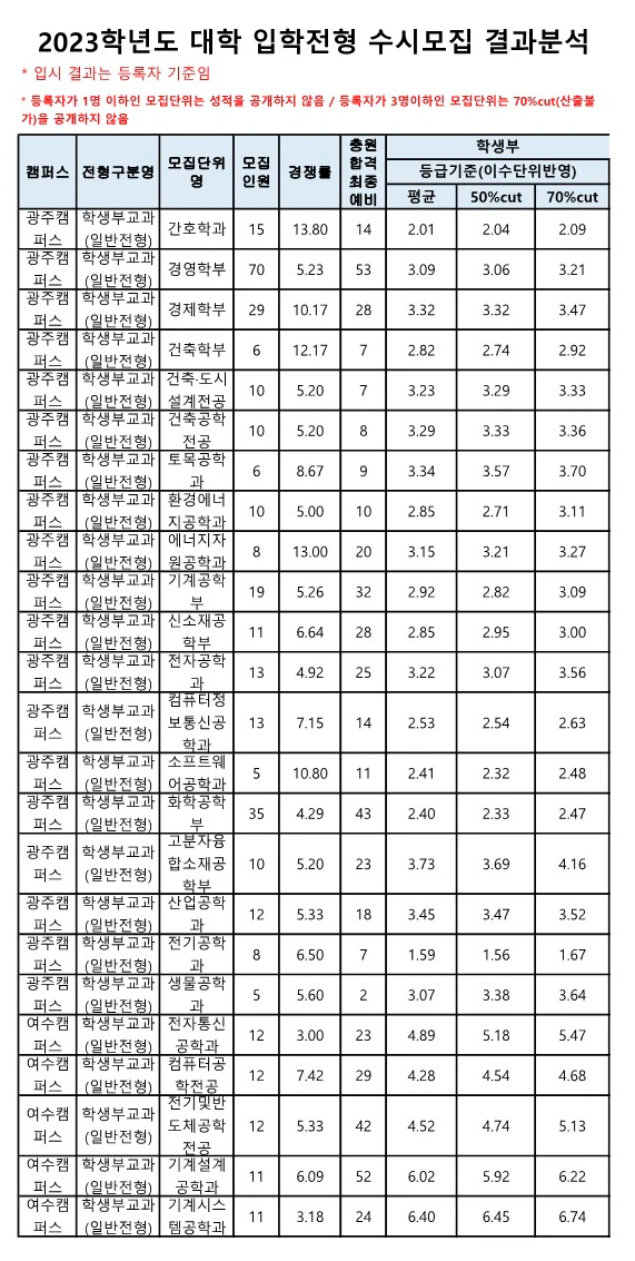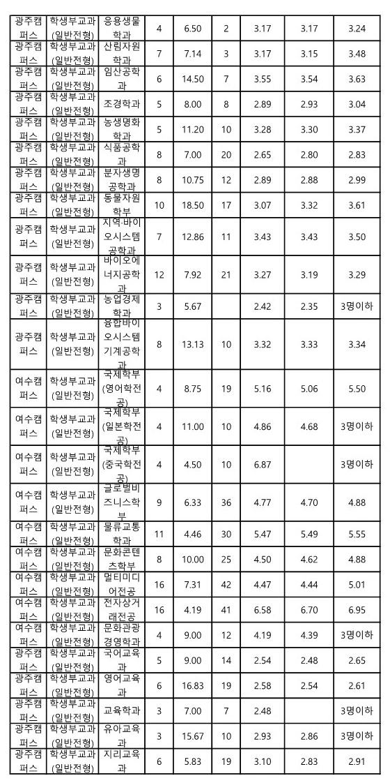전남대 교과 일반전형 수시등급 2023 3