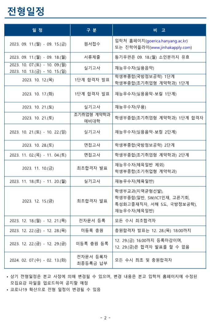 해당일에 한양대 에리카 입학처 홈페이지에 공지될 예정이니 참고하시기 바랍니다.