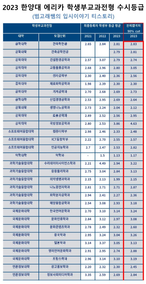 3. 2023 한양대 에리카 학생부종합전형 수시등급